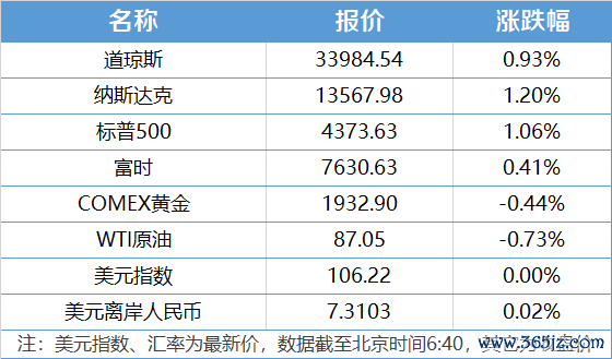 1、美股三大指数集体收涨,道指涨0.93%,纳指涨1.2%,标普500指数涨1.06%,热门科技股普涨,亚马逊、Meta涨超2%,微软、谷歌、英伟达、特斯拉涨超1%。